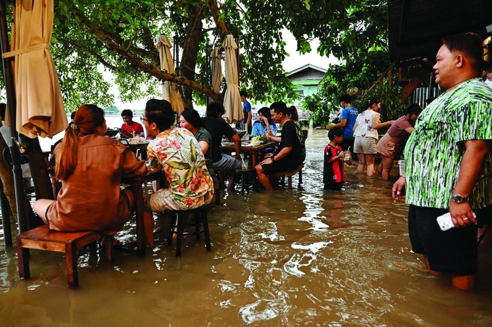 وبعد أن تصل المياه إلى الشرفة يبدأ الزبائن بالوصول، حيث لا يمضي كثير من الوقت قبل امتلاء المطعم بالزبائن الذين يتناولون طعامهم بكل سرور وكأنهم معتادون على تناول الطعام وسط مياه الفيضان.