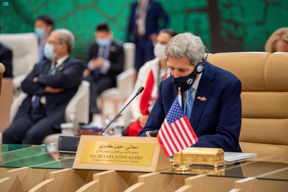 يذكر أن الشرق الأوسط يواجه الكثير من التحديات البيئية مثل التصحر، الأمر الذي يشكل تهديدا اقتصاديا للمنطقة، حيث يقدَّر أن 13 مليار دولار، تُستنزف من العواصف الرملية في المنطقة كل سنة، كما أن تلوث الهواء من غازات الاحتباس الحراري يقدَّر أنه قلص متوسط عمر المواطنين بمعدل عام ونصف العام، وأنه سيتم العمل من خلال مبادرة السعودية الخضراء على رفع الغطاء النباتي، وتقليل انبعاثات الكربون ومكافحة التلوث وتدهور الأراضي والحفاظ على الحياة البحرية.
