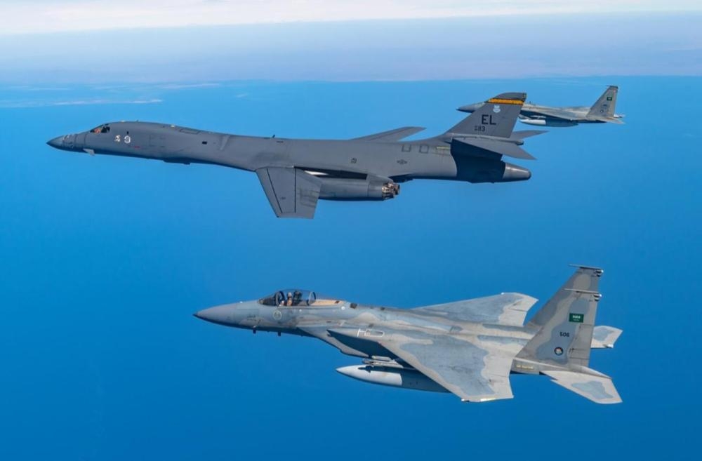 أتمت القوات الجوية الملكية السعودية والقوات الجوية الأمريكية تمريناً ثنائياً، اليوم ، شاركت فيه مقاتلات(ف-15سي) التابعة للقوات الجوية الملكية السعودية، والقاذفات الإستراتيجية (B-1) التابعة للقوات الجوية الأمريكية.