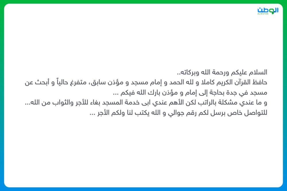 البحث عن مسجد للإمامة لا يقل صعوبة من البحث عن وظيفة، فيوجد عدد ليس بالقليل من الأئمة الباحثين عن مسجد، إما للإمامة أو الأذان، فبمجرد بحثك في منصات البيع الإلكترونية تجد العشرات من الأئمة يبحثون عن مساجد ويعرض أغلبهم خبراته وما يحفظه من القرآن.