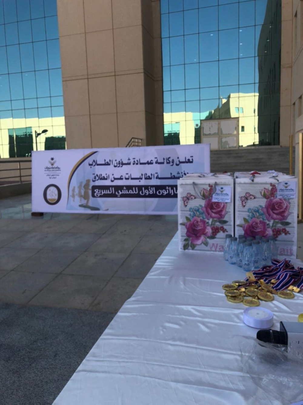 نظمت وكالة أنشطة الطالبات بعمادة شؤون الطلاب بالجامعة الماراثون الأول للمشي السريع بمسافة 1.2 كلم، بمشاركة 120 طالبة من مختلف كليات الجامعة، بهدف تعزيز ونشر ثقافة المشي وأهميتها في الحفاظ على الصحة. وأكدت وكيلة الأنشطة الطلابية الدكتورة أمل خبراني ضرورة نشر ثقافة ممارسة الرياضة داخل مجتمع الطالبات وجعلها أسلوب حياة يومية، مؤكدة أنها تسهم في الحفاظ على الصحة العامة ومعدل اللياقة لدى الممارس. وأضافت الدكتورة خبراني أن العمادة عملت على تنوع البرامج في شطر الطالبات لتشمل البرامج الثقافية والمهارية والرياضية لتطوير جميع الجوانب لدى الطالبات.