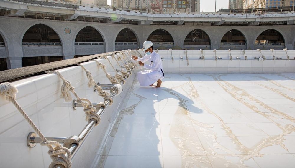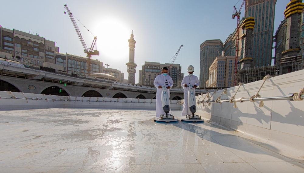 وأشار الجابري أن هذه الأجهزة والتقنيات الحديثة أتت من أجل المحافظة على جودة وسلامة الرخام، وإزالة العوالق الترابية، والحفاظ على نظافة ورونق الكعبة المشرفة بشكل خاص، والمسجد الحرام بشكل عام، وإنه تم إنجاز ذلك خلال مدة زمنية لم تتجاوز (20) دقيقة، وأن الوكالة تقوم في سبيل توفير أحدث التقنيات لتطهير بيت الله الحرام، وأن هذه التقنية تسهم في تسريع أداء المهام وبتكلفة أقل، وإن جميع الزملاء متخصصين ومدربين لخدمة البيت الحرام وقاصديه.