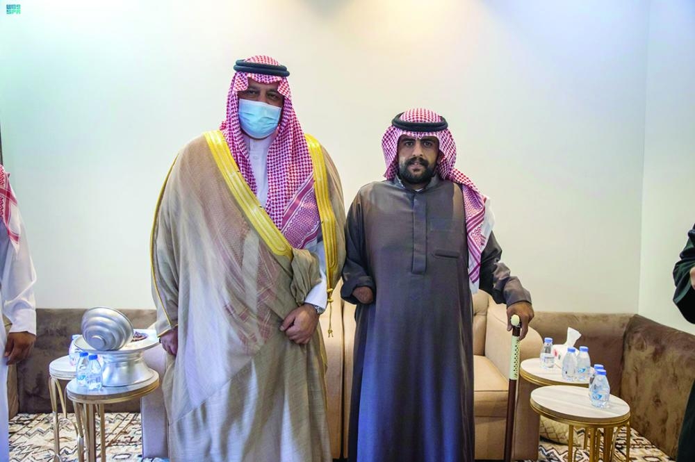 زار أمير منطقة حائل الأمير عبدالعزيز بن سعد، منزل أحد منسوبي الحرس الوطني المشاركين في الحد الجنوبي وكيل رقيب فيصل بن حمود الغيثي الشمري بعد تلقيه العلاج في أحد مستشفيات منطقة الرياض، ونجاح العملية الجراحية التي أجريت له مؤخرًا، وعودته لمدينة حائل.