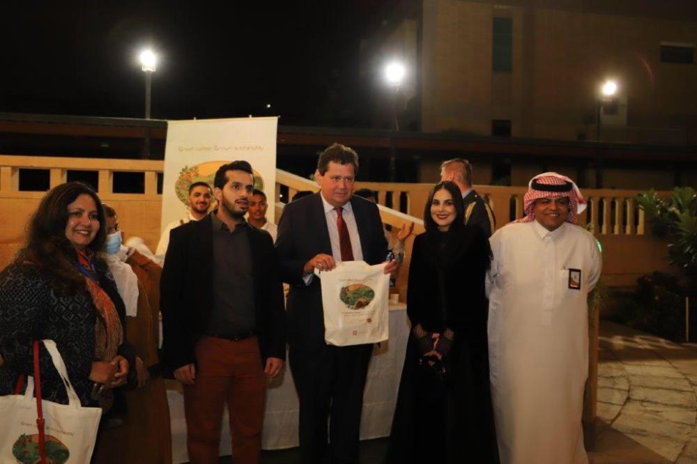 وفي هذه الفعالية - التي غابت فيها المواد البلاستيكية التي تستخدم لمرة واحدة فقط عن المشهد، وتقديم أطباق السلطة والخضروات التي تم الحصول عليها إلى حد كبير من حديقة مقر السفارة - شاهد الحضور فيلماً قصيراً حول مؤتمر الأمم المتحدة للتغير المناخي (COP26) والبرامج التي أطلقت في إطار مبادرة السعودية الخضراء. قادت مجموعة حجاز بلوجرز، وهي مجموعة تطوعية تتمثل مهمتها في المساهمة في بناء مجتمع مستوحى من البيئة والتي أطلقت مجموعة نجد بلوجرز في هذه الفعالية، الضيوف في إنشاء لوحة جدارية مكونة من مواد معاد تدويرها مع الضيوف المعنيين بتخطيط تعهدات شخصية عن العمل المناخي والبيئة لتظهر كعمل فني جماعي. وقام الحضور في هذه الفعالية بالتغريد عن تعهدهم باستخدام هاشتاج #TogetherForOurPlanet (#معاً_لأجل_كوكبنا) وتحدث رائد الأعمال السعودي في مجال القهوة، أسامة العوام من بيت التحميص عن القهوة المستدامة؛ وحول أهمية هذه المحادثات الملهمة لجميع المؤسسات لتضمين الاستدامة في نماذجها.