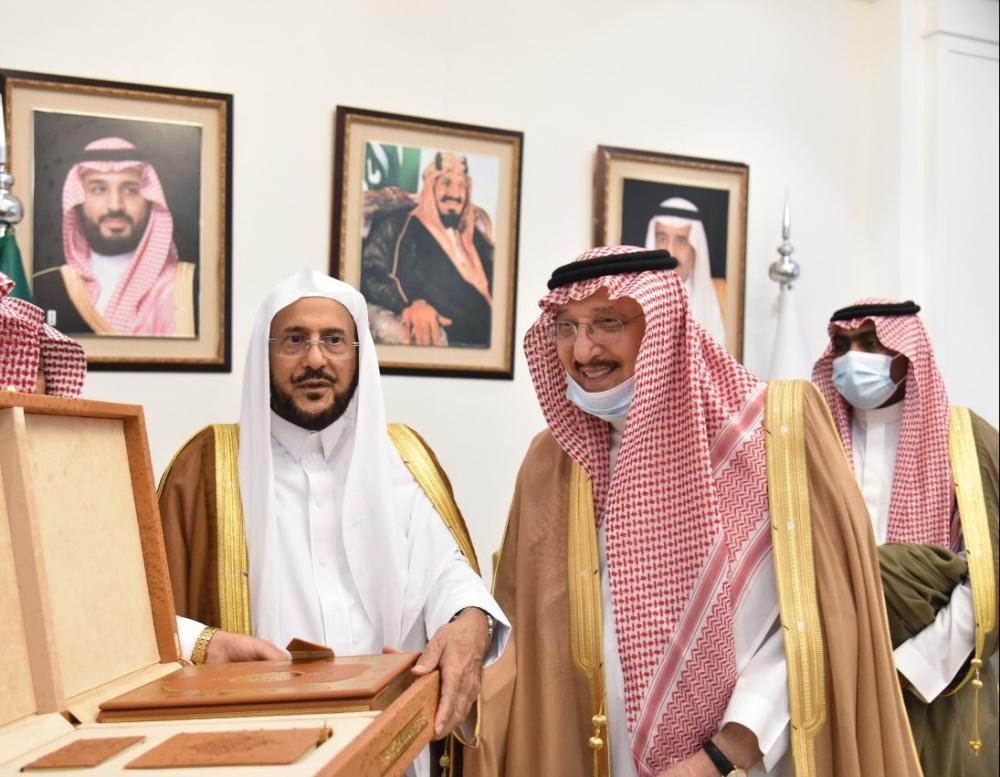 واستمع أمير جازان لشرح من وزير الشؤون الإسلامية حول الأعمال والمهام والخدمات المقدمة في مجالات الاهتمام والعناية برعاية المساجد والجوامع، وترميمها ونظافتها وصيانتها، إنفاذًا لتوجيهات القيادة التي جعلت رعاية وخدمة بيوت الله في مقدمة اهتماماتها.