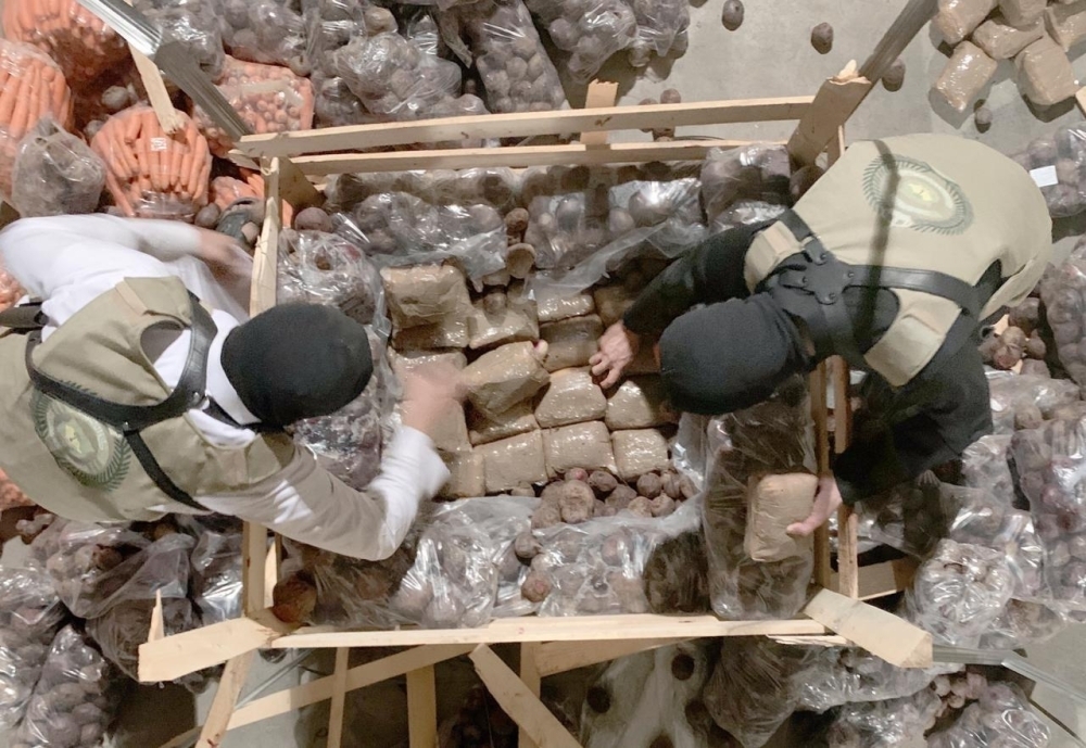 صرح المتحدث الرسمي للمديرية العامة لمكافحة المخدرات الرائد محمد النجيدي، بأن المتابعة الأمنية الاستباقية لنشاطات مهربي المخدرات، التي تستهدف أمن وشباب المملكة، أسفرت عن إحباط مخطط إجرامي لتهريب 30.349.000 قرص إمفيتامين مخدر إلى المملكة، وفق خطة أمنية محكمة بمتابعة وتحديد شحنة المواد المخدرة داخل حاويات «هيل»، وضبطها بالميناء الجاف بمنطقة الرياض، بالتنسيق مع هيئة الزكاة والضريبة والجمارك، والقبض على مستقبليها، 4 أشخاص، مواطنين ومقيمين من الجنسية السورية. وجرى إيقافهم واتخاذ بحقهم الإجراءات النظامية الأولية، وإحالتهم إلى النيابة العامة.