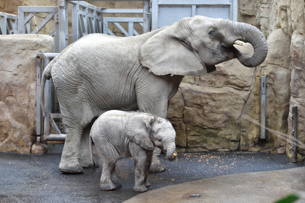 الفيل الإفريقي Zyqqari، يلعب مع والدته داخل حظائرهم في Zlin Zoo وهو أول فيل إفريقي يولد في جمهورية التشيك.