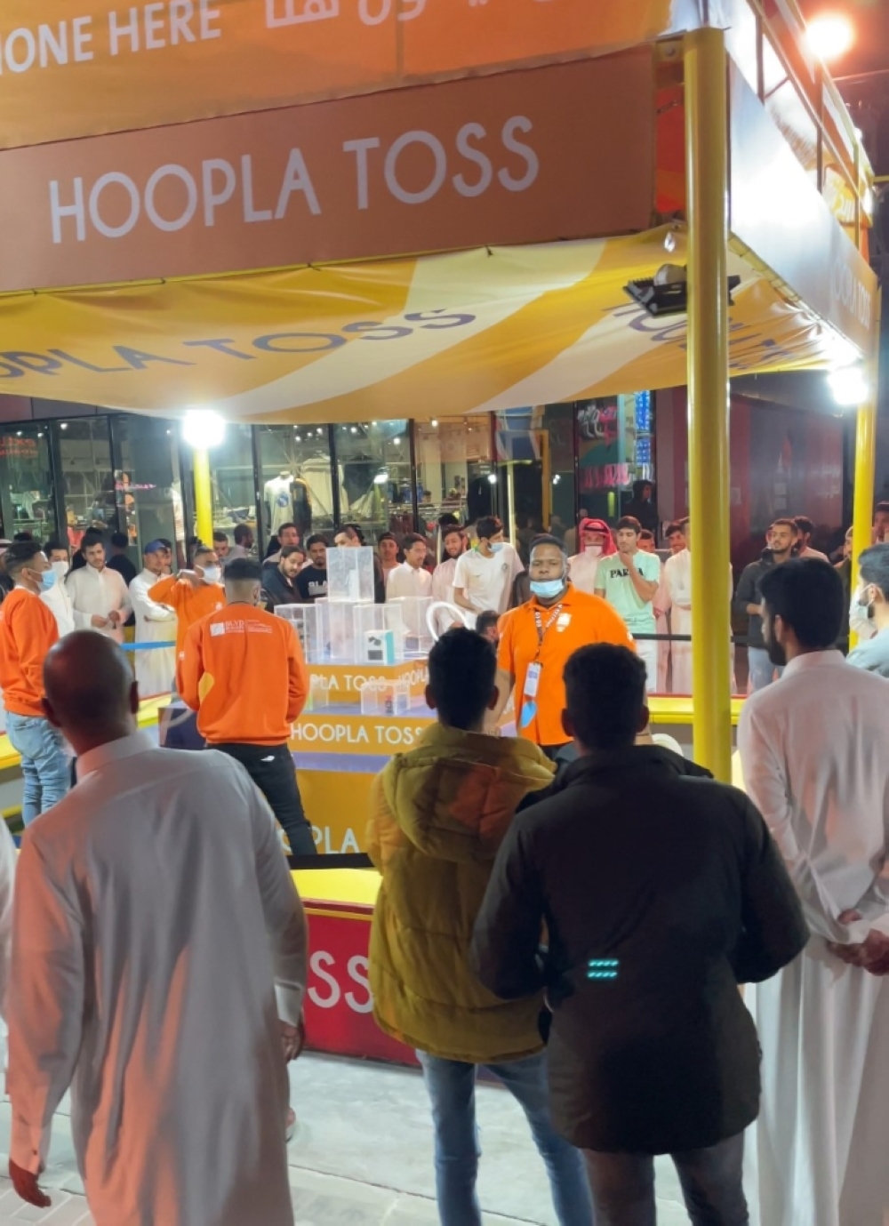 وهناك تحديات لقيت صدى واسعا بين الشباب والبنات وهو رمي طوق للفوز بآيفون، إضافة إلى تحدي التعلق والإمساك باليدين والبقاء لمدة 3 دقائق دون الوقوع على الأرض. وتجد عند تلك الأكشاك طوابير طويلة نظرا للإقبال الكبير الذي تشهده تلك الألعاب، حيث يمكن أن تقف لمدة لا تقل عن نصف ساعة كي تستطيع اللعب على الرغم من أن عدد الأكشاك ليس بقليل، ولكن نظرا لما تشهده تلك الألعاب من إقبال ويلاحظ أن نوع اختيار التحدي واللعبة ليس هو الاختيار الأبرز، ولكن يتم اختيار اللعبة بناءً على الهدية والدمية الأجمل التي يمكن الحصول عليها في حال الفوز.