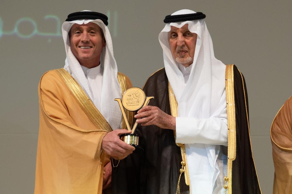 وشكر النصر الأمير خالد الفيصل، وقال: «شكرًا لكم يا سمو الأمير لأنكم قرنتم اسمي بالاعتدال، وهي صفة جليلة ظللت طيلة حياتي أحاول تجسيدها وتبنيها في مسيرتي على المستوى الشخصي والمهني، ولم أكن لأحقق ما حققته لوطني الغالي لولا إيماني الكامل بأن الاعتدال مطلب أساسي لبناء الأوطان».
