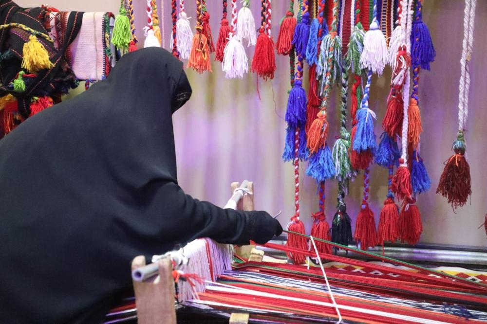 وبينت «أم سعد»: أنها تقوم بحياكة القبعات والملابس والشالات شعبيه وتقوم بصناعة الشمائل والجنايب والعنيني وقيود الإبل والخرجة الذي توضع فيها القهوة والهيل والتمر وغيرها من المنتجات الصوفية.