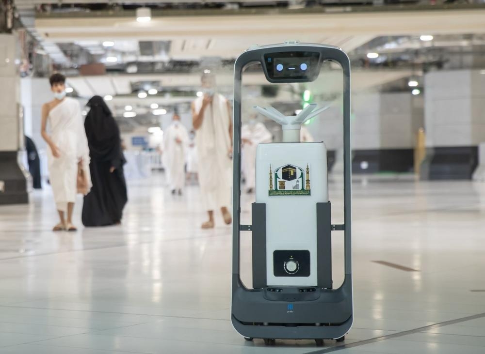 وعملت وكالة الخدمات و الشؤون الميدانية وتحقيق الوقاية البيئية ممثلة في الإدارة العامة للوقاية البيئية ومكافحة الأوبئة على دعم منظومة التعقيم في المسجد الحرام وتوفير الروبوتات لتعقيم مساحات أوسع وتغطية جنبات المسجد الحرام، وتعمل الروبوتات بنظام تحكم آلي مبرمج على خريطة مسبقة، وعلى (6) مستويات مما يحسن سلامة الجو الصحي البيئي وتحليل متطلبات التعقيم بذكاء، وفقاً لسيناريوهات الاستخدام، ومسار التعقيم، والمدة المخططة بشكل مستقل لتغطية كاملة للفضاء البيئي.