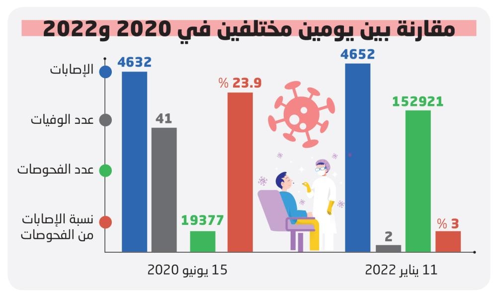 وحول الارتفاع الملحوظ في منحنى الإصابات، وفي نفس الوقت عودة الدراسة الحضورية إلى المدارس الابتدائية ورياض الأطفال، قال استشاري الأمراض المعدية الدكتور نزار باهبري، إن المؤثر في هذه المسألة هو المنحنى، فالمنحى كان متضاعفا بحيث تقدر الزيادة اليومية بين 500 و600 حالة، ومن ثم ارتفع تدريجيا إلى أن أصبح فوق مستوى 5 آلاف حالة، بحيث بدأ يتسطح هذا المنحنى، الأمر الذي جعل الجهات الصحية تقيم الوضع، فوجدت أن أغلب الحالات المصابة تكون إصاباتها طفيفة، ولا توجد هناك زيادة في عدد الحالات الحرجة، ولا في حالات التنويم.