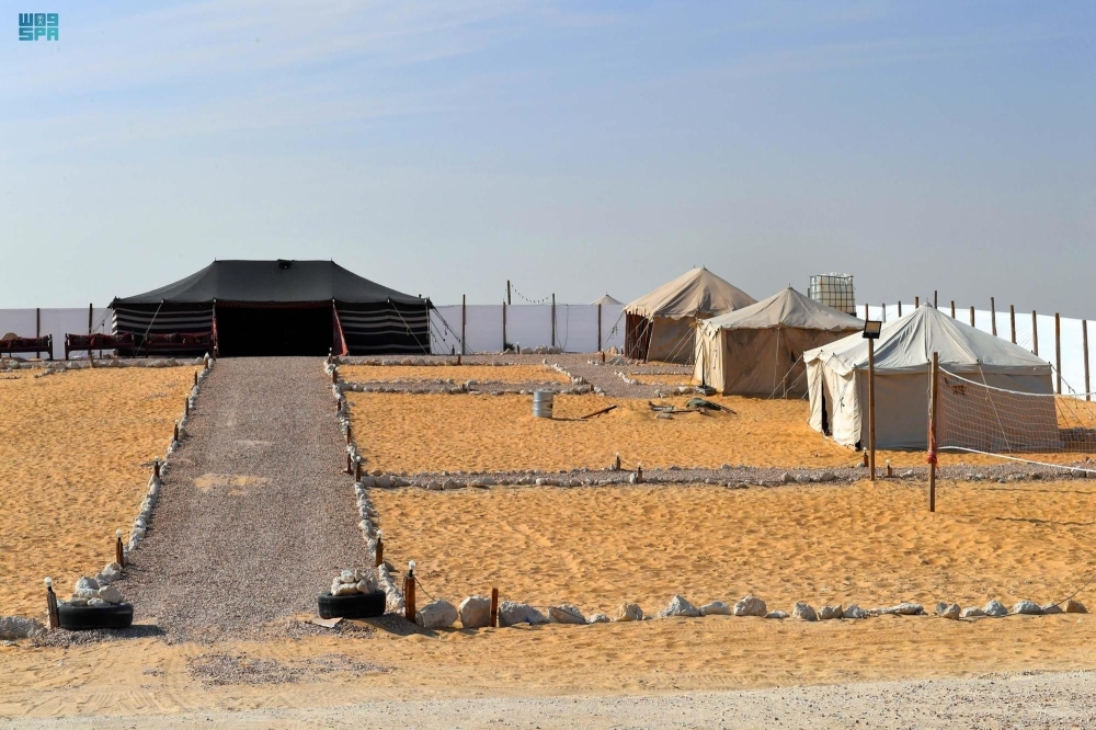 ويبعد المخيم البري بالمنطقة الشرقية عن مدينة الدمام 20 كيلو مترًا على الطريق الرابط بين طريق الرياض السريع وطريق المطار، وتبلغ مساحة كل مخيم 3000 متر مربع، ونظرًا لخصوصية المخيمات حددت بين كل مخيم وآخر 40 مترًا، لتحقيق التباعد الاجتماعي.