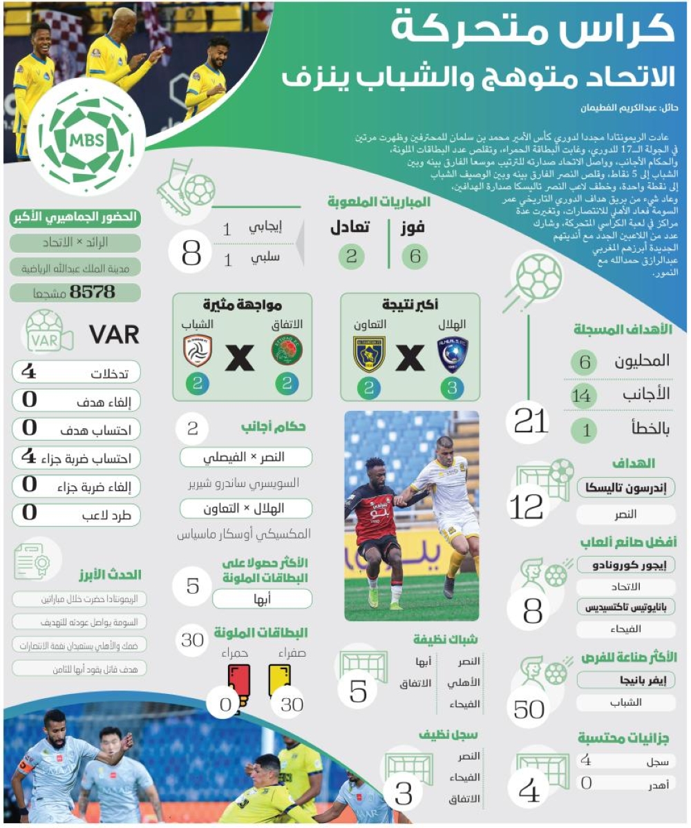 عادت الريمونتادا مجددا لدوري كأس الأمير محمد بن سلمان للمحترفين وظهرت مرتين في الجولة الـ17 للدوري، وغابت البطاقة الحمراء، وتقلص عدد البطاقات الملونة، والحكام الأجانب، وواصل الاتحاد صدارته للترتيب موسعا الفارق بينه وبين الشباب إلى 5 نقاط، وقلص النصر الفارق بينه وبين الوصيف الشباب إلى نقطة واحدة، وخطف لاعب النصر تاليسكا صدارة الهدافين، وعاد شيء من بريق هداف الدوري التاريخي عمر السومة فعاد الأهلي للانتصارات، وتغيرت عدة مراكز في لعبة الكراسي المتحركة، وشارك عدد من اللاعبين الجدد مع أنديتهم الجديدة أبرزهم المغربي عبدالرازق حمدالله مع النمور.