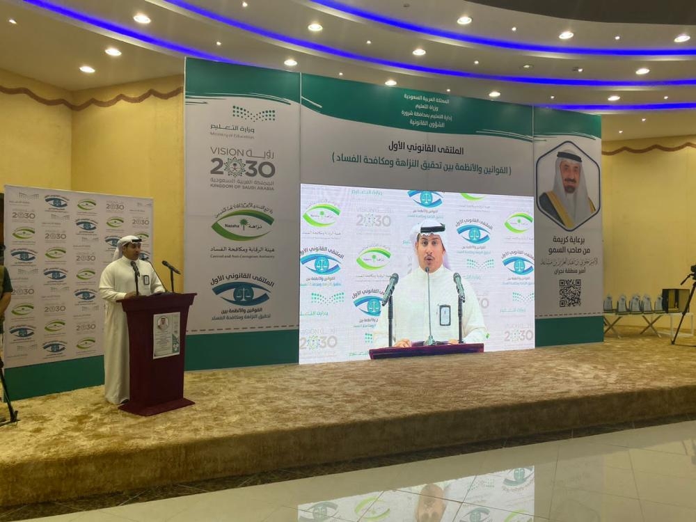 وقال: الدور المهم الذي توليه المملكة لتعزيز الشفافية والقضاء على الممارسات الخارجة عن أطر التشريعات والأنظمة قد أسهم بشكل ملحوظ وملموس في وصولنا إلى مراكز منافسة في التصنيفات العالمية، وانطلاقا من دورنا كجهة تعليمية تحمل على عاتقها مناقشة القضايا العامة وتعزيز ثقافة المشاركة وتوحيد الجهود فقد جاءت فكرة هذا الملتقى بأهدافه الساعية إلى تعزيز مفهوم الرقابة الذاتية.
