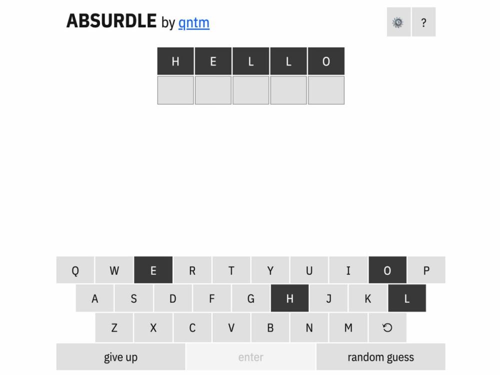 تغير خوارزمية Absurdle إجابتها باستمرار وتحاول تضييق النتائج بأقل قدر ممكن مع كل من التخمينات الستة الممكنة. والهدف النهائي هو التخمين باستخدام مخطط حروف متنوع للغاية بحيث لا يكون أمام اللاعب، من خلال أدلة الخوارزمية، خيار سوى إظهار الكلمة الواحدة التي تناسب متطلباتك.
