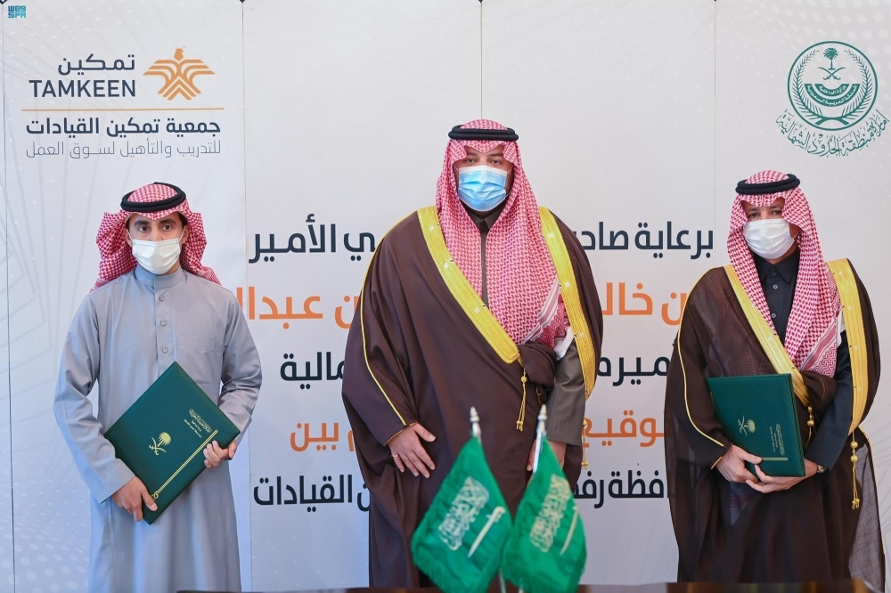 شهد أمير منطقة الحدود الشمالية الأمير فيصل بن خالد بن سلطان، توقيع اتفاقية تعاون بين إمارة المنطقة يمثلها وكيل الإمارة محمد بن لبدة، وجمعية تمكين القيادات للتدريب والتأهيل يمثلها نائب رئيس مجلس الإدارة عادل الشمري.