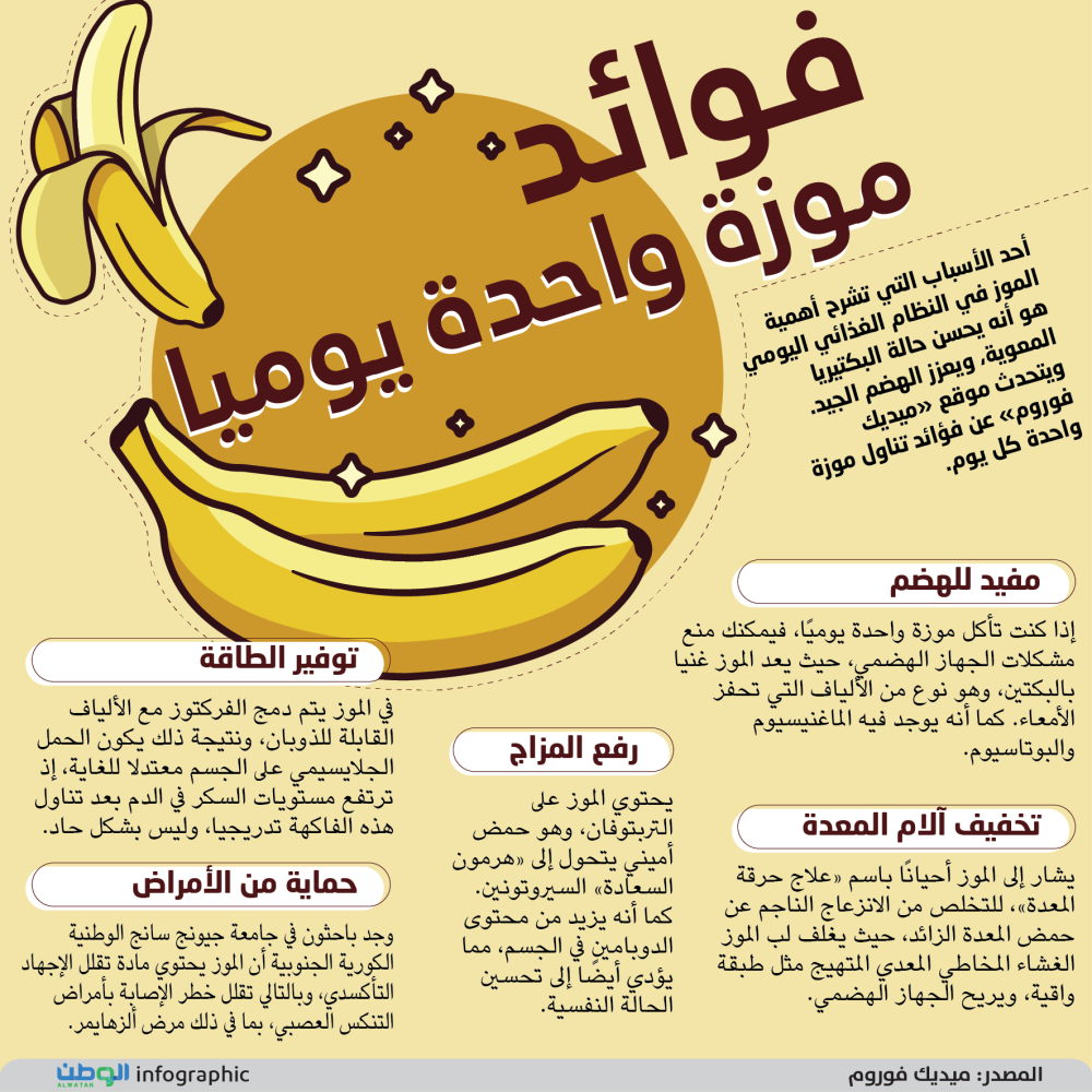 ويتحدث موقع «ميديك فوروم» عن فؤائد تناول موزة واحدة كل يوم.