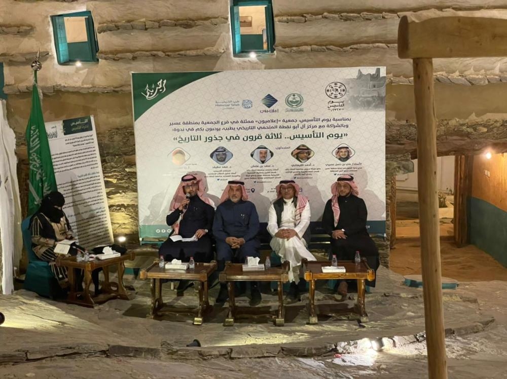 في يوم التأسيس دشنت جمعية إعلاميون فرعها في منطقة عسير بالشراكة مع مركز آل أبونقطة المتحمي التاريخي بطبب بندوة بعنوان يوم التأسيس ثلاثة قرون في جذور التاريخ بوجود نخبة من المتحدثين وتحدث في الندوة، كلٌ من: الدكتور سعد بن عثمان والأستاذ علي عسيري والدكتور أحمد التيهاني والدكتور فهد عطيف وأدارت الندوة الأستاذة رنا ﺍﻟﺸﻬﺮﺍﻧﻲ وتطرقت الندوة إلى 4 محاور، وهي: المؤسس والتأسيس.. وحدة واستقرار. مقال الأمير.. وفاء الملوك للأئمة المؤسسين. الدور التاريخي لعسير ورجالها في التأسيس والوحدة. ويوم التأسيس في الصحافة العالمية.