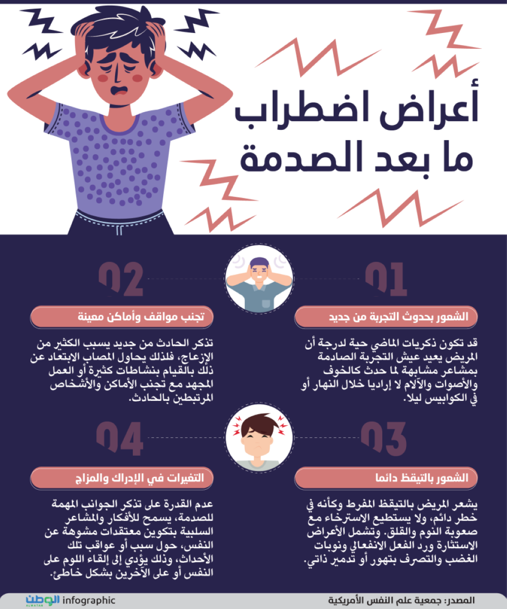 قد تكون ذكريات الماضي حية لدرجة أن المريض يعيد عيش التجربة الصادمة بمشاعر مشابهة لما حدث كالخوف والأصوات والآلام لا إراديا خلال النهار أو في الكوابيس ليلا.