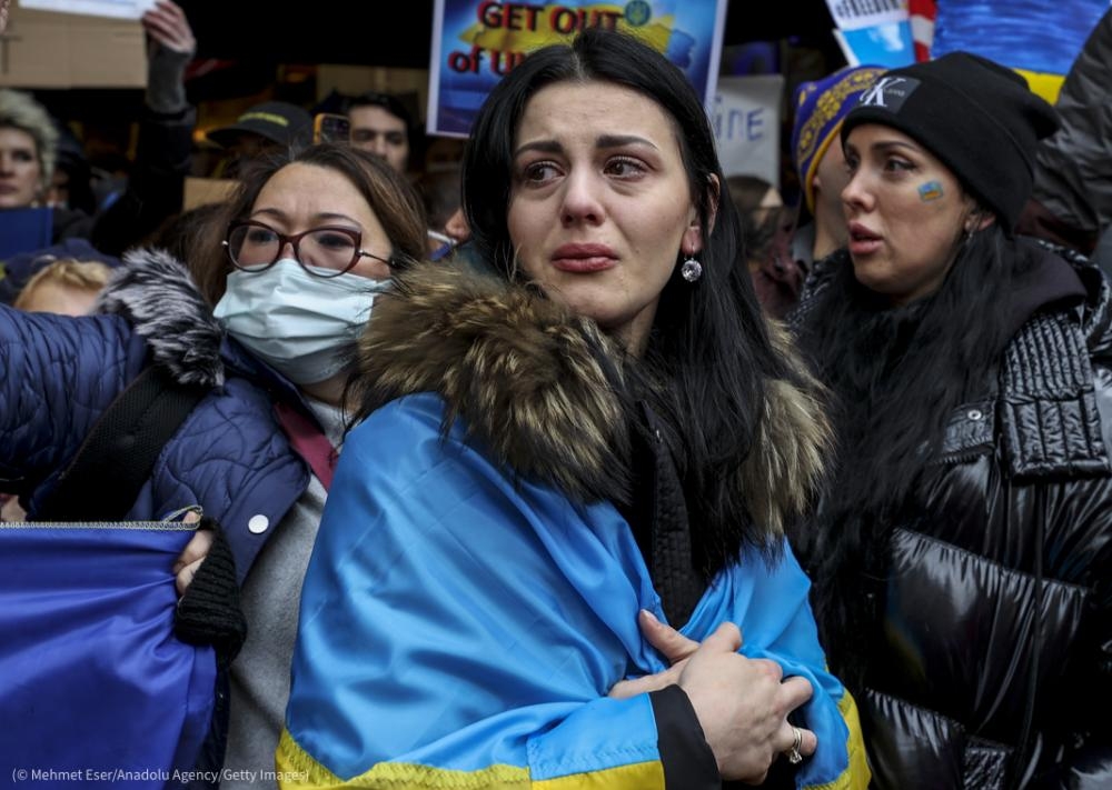 ورُفع العلم الأوكراني كما ارتدى مشاركون عدة اللونين الأزرق والأصفر، وكُتب على إحدى اللافتات «يا شعب أوكرانيا لن نتخلى عنكم! ديمقراطية، حرية، سلام». في إسبانيا نُظّمت تظاهرات في مدريد وبرشلونة، وفي مدن أخرى للمطالبة بوضع حد للغزو الروسي لأوكرانيا.