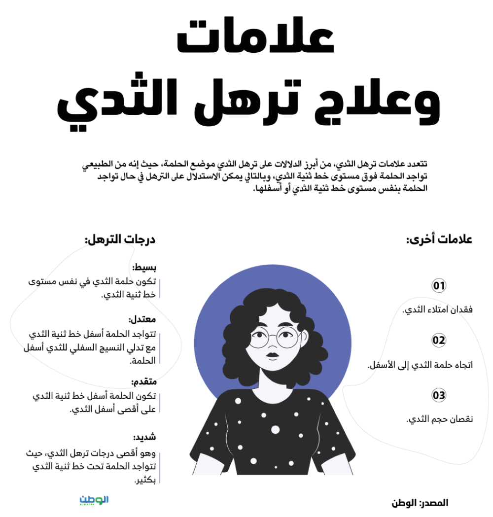 شديد: وهو أقصى درجات ترهل الثدي، حيث تتواجد الحلمة تحت خط ثنية الثدي بكثير.