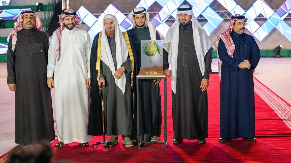 أختتم مهرجان زيتون الجوف الدولي في نسخته الـ15، بإعلان أسماء الفائزين بجائزة أمير منطقة الجوف الأمير فيصل بن نواف، لأفضل إنتاج للمزارعين من الزيت والزيتون، البالغة قيمتها نصف مليون ريال.