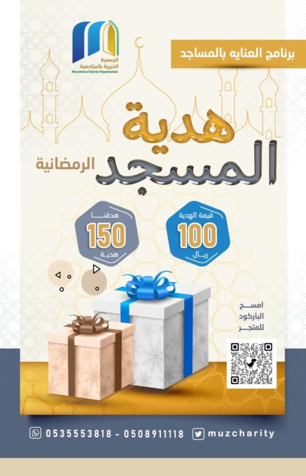 وقال الرئيس التنفيذي للجمعية عبدالله المبدل إنه لمكانة المساجد في الإسلام ولأهمية العناية بها ولما للهدية من عظيم الأثر في النفوس، جاءت فكرة هدية المسجد باعتبارها وسيلةٌ للدعوة، حيث يجري الاستعداد لتجهيز الهدايا وتقديمها في رمضان، وتشمل الهدية (البخور، المعمول، المبخرة، الفحم، والمناديل) مستهدفين تقديم 150 هدية لزوار بيوت الله حيث تبلغ قيمة كل هدية 100 ريال فقط، مشيرا أن الجمعية أتاحت التبرع من خلال المتجر الإلكتروني.