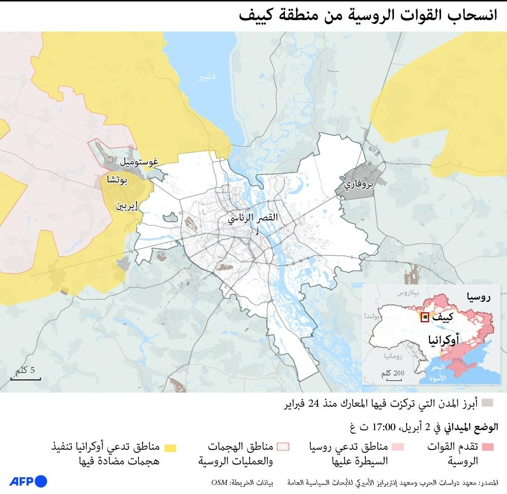 عُثر على 57 جثة في مقبرة جماعية في مدينة بوتشا قرب كييف بعدما حررتها القوات الأوكرانية هذا الأسبوع، بحسب ما أفاد الأحد مسؤول الإغاثة المحلي سيرهي كابليتشني لوكالة فرانس برس.