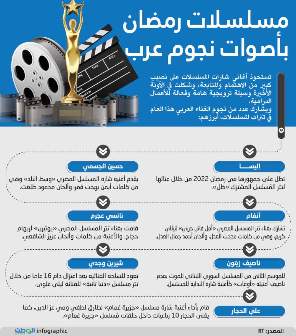 ويشارك عدد من نجوم الغناء العربي هذا العام في تترات المسلسلات، أبرزهم: