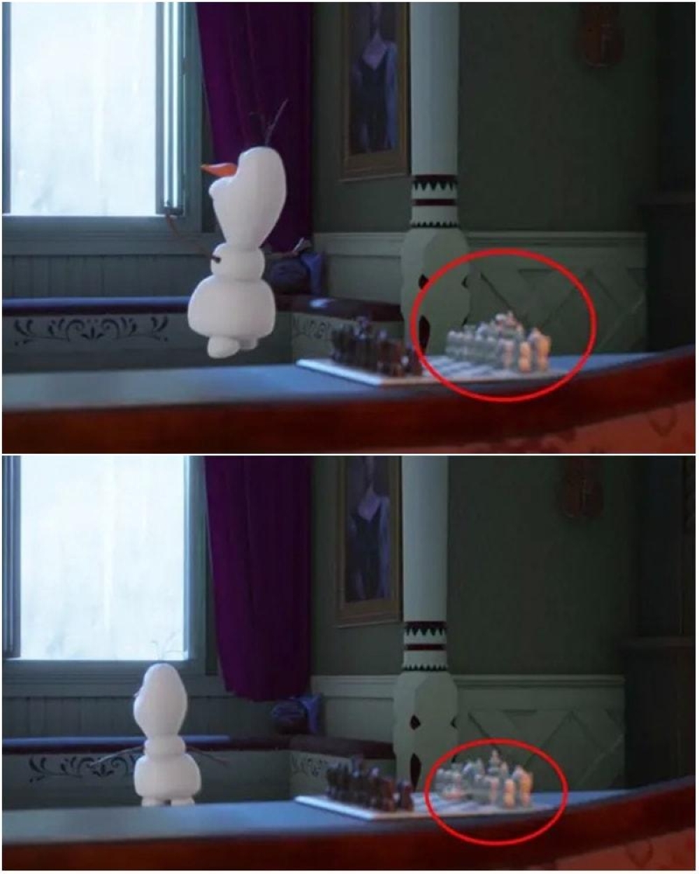 غالبًا ما يرمز استخدام الشطرنج في الأفلام إلى تحول درامي ومهم في الحبكة. في فيلم فروزن، تم استخدام ذلك بأناقة شديدة، لكن قلة من المتابعين لاحظوا ذلك!
