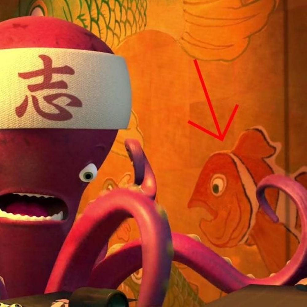 على سبيل المقال، يُمكنك مشاهدة صورة لنيمو عدة مرات في خلفيات فيلم شركة المرعبين المحدودة، قبل عامين من تألقه في فيلم البحث عن نيمو.