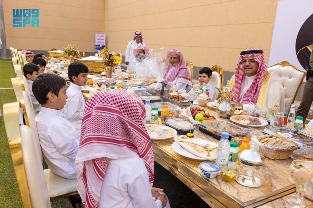 أقام محافظ حفر الباطن الأمير منصور بن محمد بن سعد، مأدبة إفطار رمضانية في جمعية رعاية الأيتام بمحافظة حفر الباطن (تراؤف).