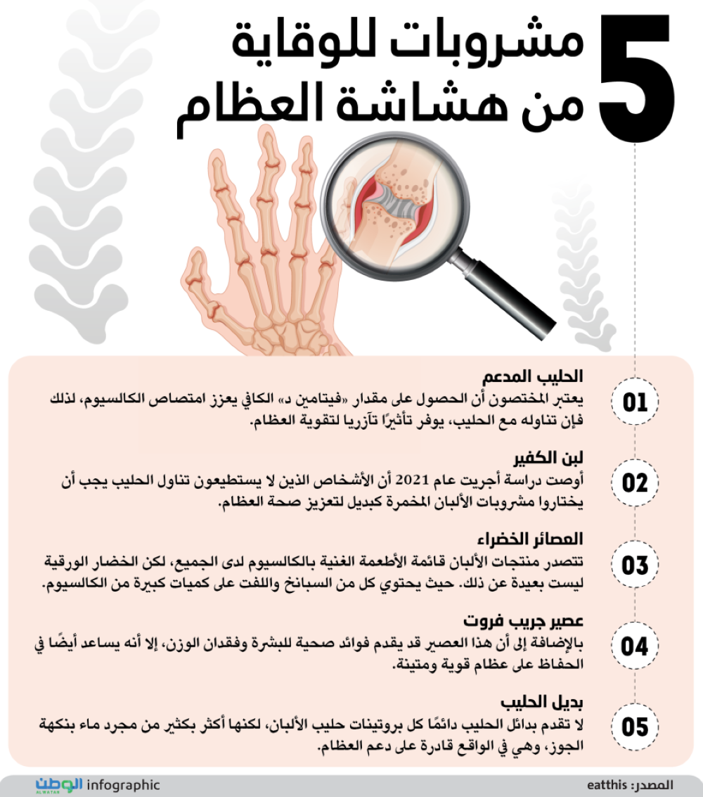 يعتبر المختصون أن الحصول على مقدار «فيتامين د» الكافي يعزز امتصاص الكالسيوم، لذلك فإن تناوله مع الحليب، يوفر تأثيرًا تآزريا لتقوية العظام.