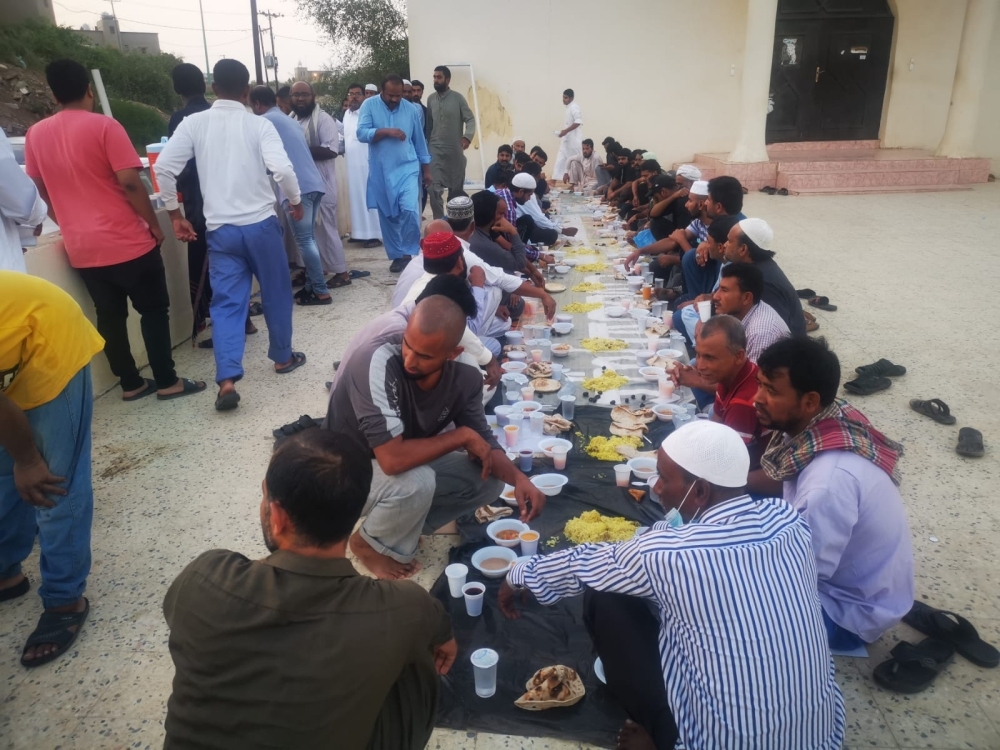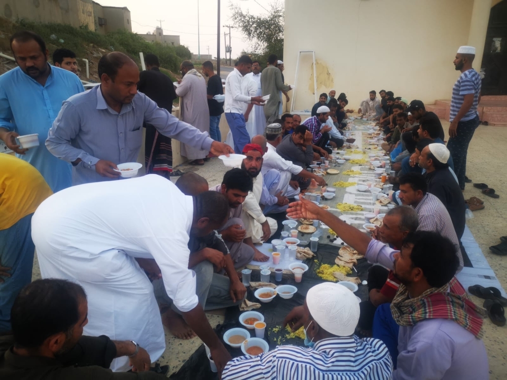 لا تبدو الأجواء الرمضانية في المملكة بعيدة بدورها عن تلك التي تعيشها بقية دول العرب، وتبقى موائد إفطار الصائم الجماعية واحدة من العلامات المميزة لرمضان في المملكة، فمع السماح بعودتها بعد توقف خلال العامين الماضيين بسبب جائحة كورونا، عادت تلك الموائد لتأخذ حيزها الواسع من المشهد الرمضاني، ففي محافظة الدرب التابعة لجازان مثلا، ينظم شباب جامع الغيناء وبالتعاون مع أهالي الحي سفرة رمضانية لإفطار الصائمين المقيمين، وذلك في ساحة الجامع، وتهدف إلى بث روح الأخوة والمحبة وتحقيق معنى الجسد الواحد، بإشراف مباشر من إمام ومؤذن الجامع، وأوضح مهدي فقيه وهو أحد المشرفين على المائدة أنهم يحرصون كل عام على إقامة هذه السفرة للمقيمين من مختلف جنسيات العالم، عملًا بقول النبي عليه صلى الله عليه وسلم «من فطّر صائما كان له مثل أجره» وتأتي هذه المبادرة بتكاتف وبدعم من الجميع وأهالي الحي جزاهم الله خيرا.