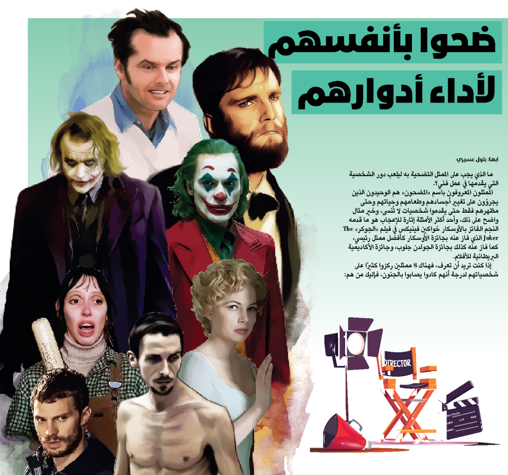 الممثلون المعروفون باسم «المضحون» هم الوحيدون الذين يجرؤون على تغيير أجسادهم وطعامهم وحياتهم وحتى مظهرهم فقط حتى يقدموا شخصيات لا تُنسى، وخير مثال واضح على ذلك، وأحد أكثر الأمثلة إثارة للإعجاب هو ما قدمه النجم الفائز بالأوسكار خواكين فينيكس في فيلم «الجوكر» The Joker الذي فاز عنه بجائزة الأوسكار كأفضل ممثل رئيسي، كما فاز عنه كذلك بجائزة الجولدن جلوب، وجائزة الأكاديمية البريطانية للأفلام.