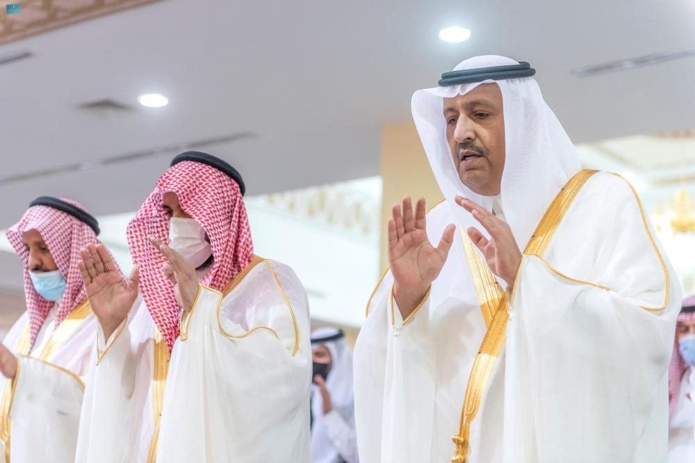 وأدى الصلاة مع الأمير مفتي عام المملكة رئيس هيئة كبار العلماء وإدارة البحوث العلمية والإفتاء الشيخ عبدالعزيز بن عبدالله آل الشيخ. كما أدى الصلاة مع أمير الرياض مجموعة من الأمراء وكبار المسؤولين المدنين والعسكريين.