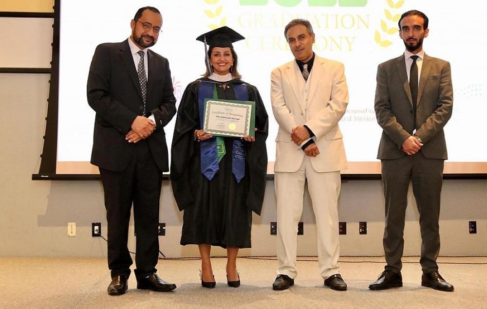 وأعرب مساعد الملحق الثقافي بالولايات المتحدة الأمريكية للشؤون الدراسية الدكتور عبدالقادر العيدروس، في كلمته خلال الحفل، عن سعادته بالمشاركة في الاحتفاء بتخريج هذه الدفعة من المتبعثين والمبتعثات، مشيراً إلى أن الوطن يسعد بأبنائه وينتظر عطاءاتهم بعد التخرج؛ليسهموا في دفع عجلة النهضة في البلاد، مقدماً التهنئة لجميع الخريجين والخريجات على نجاحهم في مسيرتهم التعليمية.