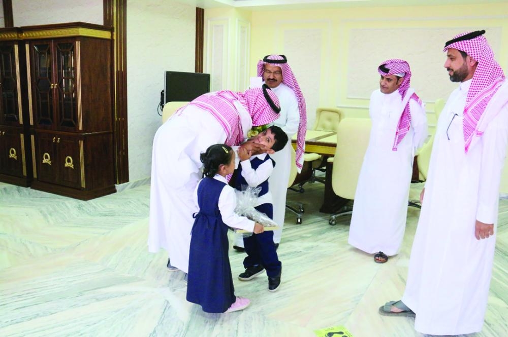 رحب الدكتور محمد الثبيتي بطفلة وطفل قدما له التهنئة بمناسبة تجديد ثقة وزير التعليم بتكليفه مديرًا لتعليم القريات.