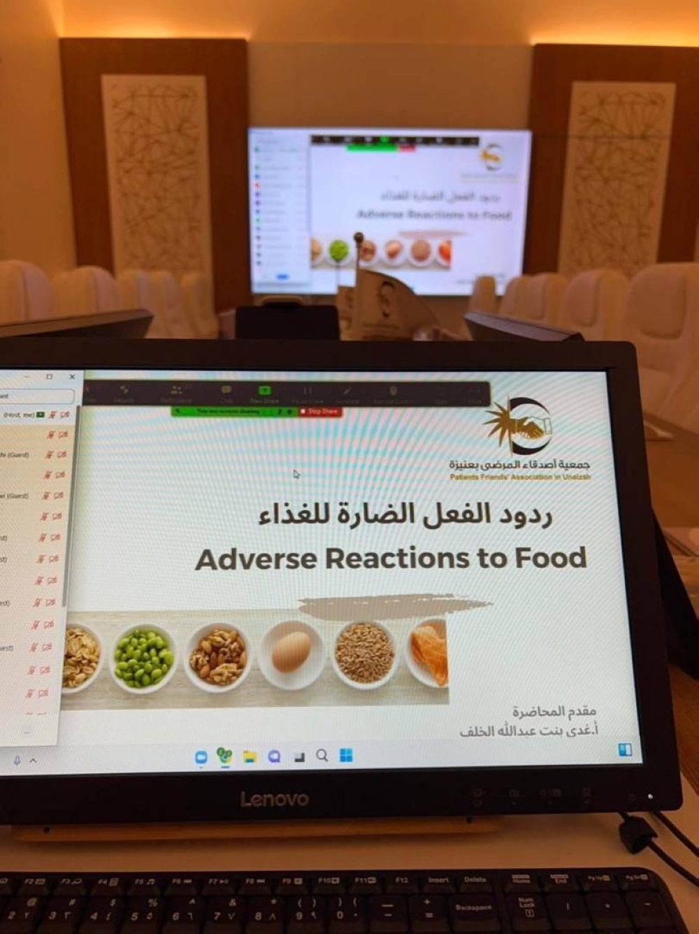 كما بينت المحاضرة نسب انتشار الحساسية في المملكة والتي تعتبر في تزايد حيث يُذكر في آخر دراسة نفذتها جامعة طيبة أن نسبة انتشار التحسس في السعودية 21% وذكرت أشهر الأغذية المسببة للتحسس وهي تختلف من منطقة إلى أخرى حيث في المملكة العربية السعودية يوجد 14 نوعا الأكثر شهرة وبلا شك أن أشهرها اللوز والقمح والحليب.