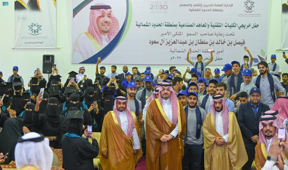 رعى أمير منطقة الحدود الشمالية الأمير فيصل بن خالد بن سلطان، بمقر الكلية التقنية بمدينة عرعر، حفل تخريج متدربي المؤسسة العامة للتدريب التقني والمهني لعام 1443 بمختلف التخصصات التقنية والمهنية، والبالغ عددهم 820 متدربًا، بحضور محافظ المؤسسة العامة للتدريب التقني والمهني الدكتور أحمد بن فهد الفهيد.