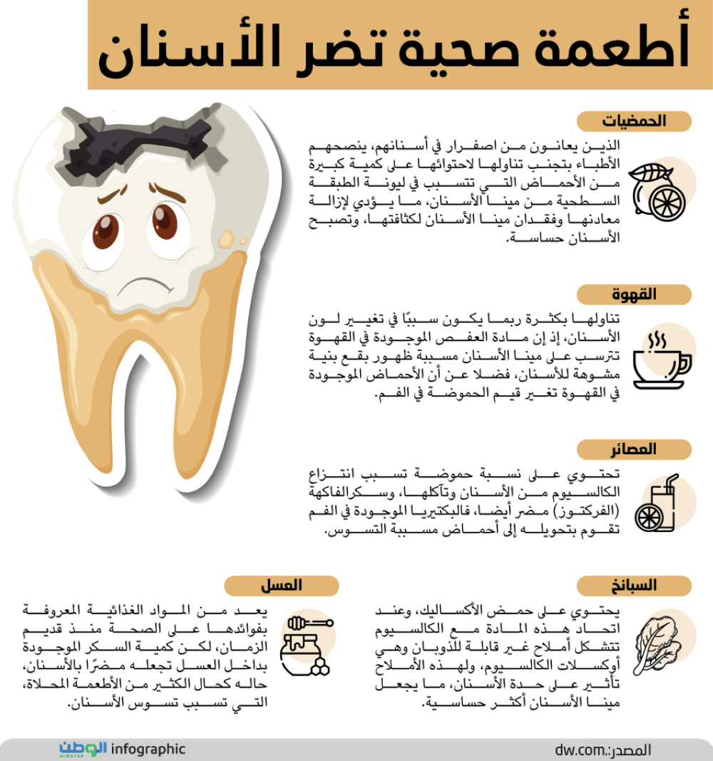 يعد من المواد الغذائية المعروفة بفوائدها على الصحة منذ قديم الزمان، لكن كمية السكر الموجودة بداخل العسل تجعله مضرًا بالأسنان، حاله كحال الكثير من الأطعمة المحلاة، التي تسبب تسوس الأسنان.