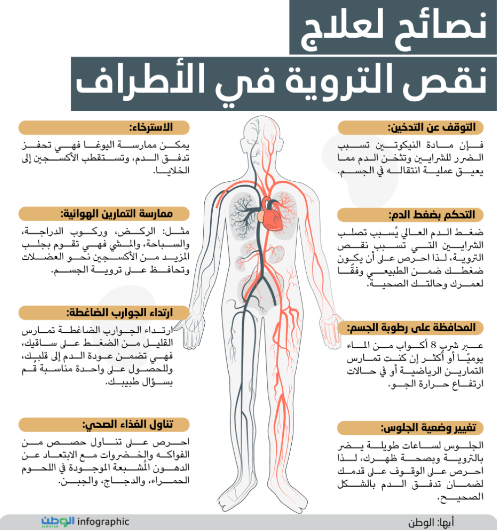 التحكم بضغط الدم: ضغط الدم العالي يُسبب تصلب الشرايين التي تسبب نقص التروية، لذا احرص على أن يكون ضغطك ضمن الطبيعي وفقًا لعمرك وحالتك الصحية.