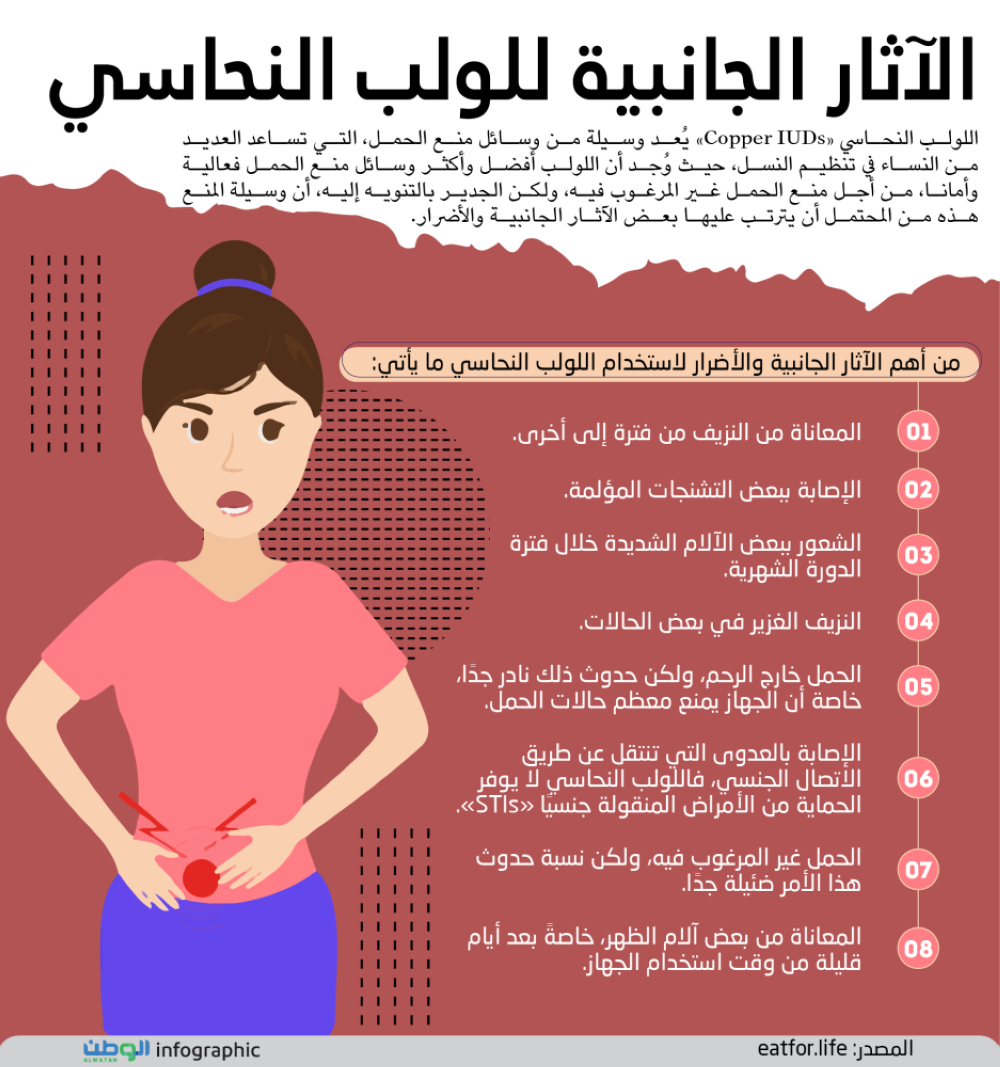 من أهم الآثار الجانبية والأضرار لاستخدام اللولب النحاسي ما يأتي: