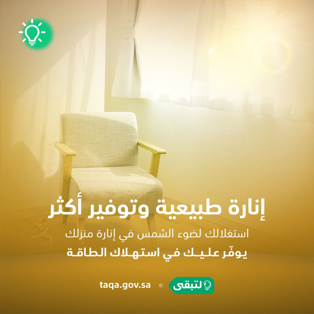 وينصح المركز السعودي لكفاءة من ضرورة الاستفادة من ضوء الشمس خلال النهار قدر الإمكان.