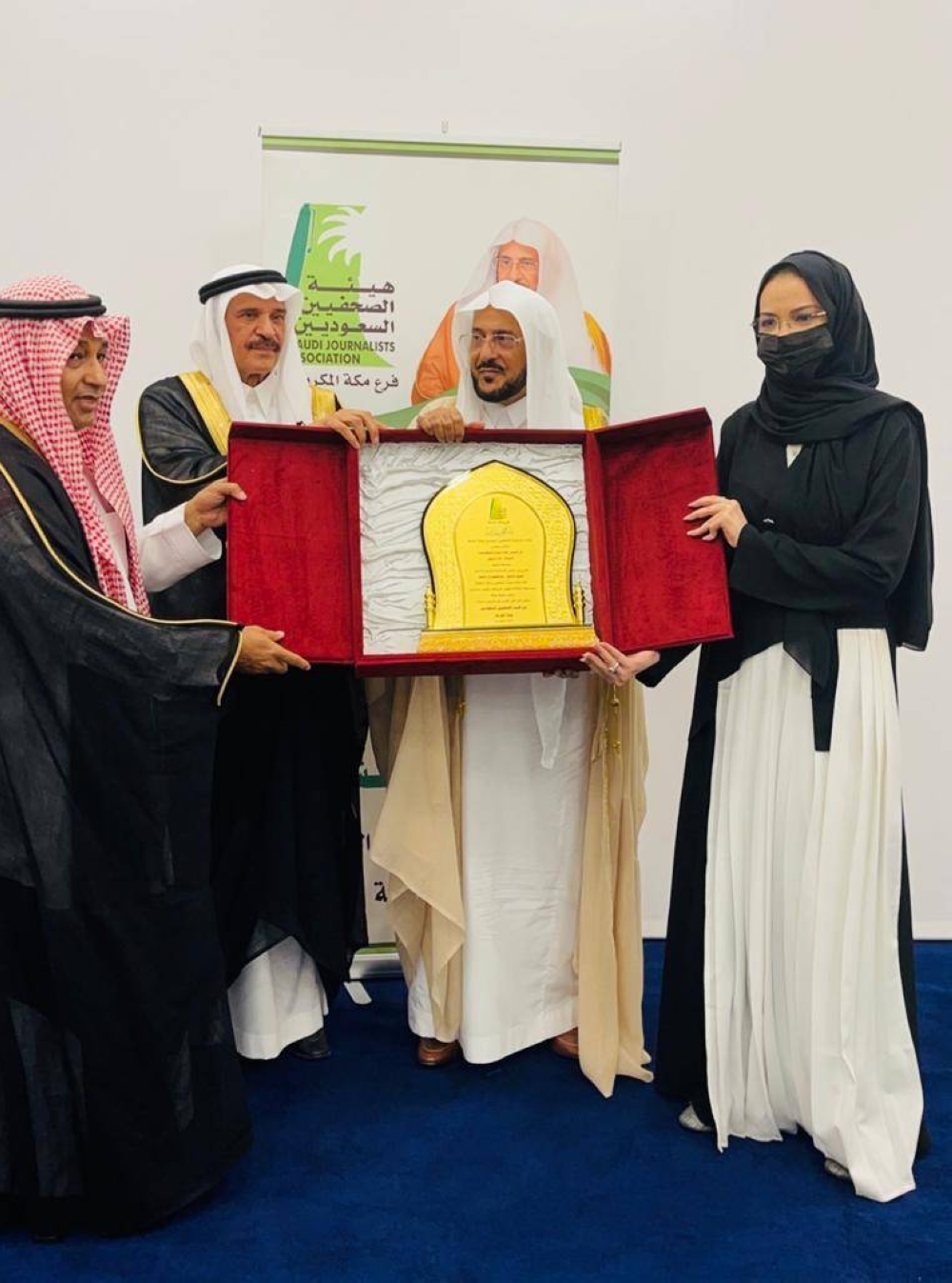 فيما كرّمت هيئة الصحفيين السعوديين، وزير الشؤون الإسلامية بدرع تذكاري نظير جهوده في خدمة الإسلام والمسلمين ونشر الوسطية والاعتدال وخدمة ضيوف الرحمن، حيث تسلّم الوزير الدرع من رئيس مجلس إدارة هيئة الصحفيين السعوديين خالد المالك