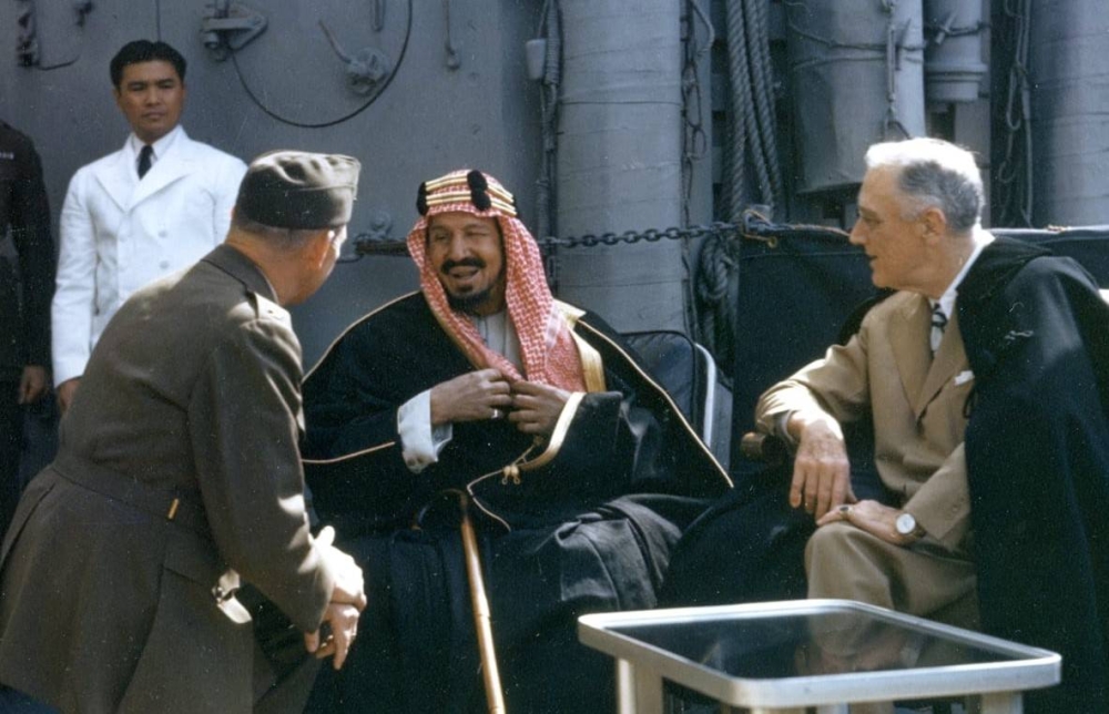 كانت العلاقة بين الولايات المتحدة والسعودية منذ نهاية الحرب العالمية الثانية مبنية على ركائز النفط السعودي وضمانات الأمن الأمريكي، لكنها أصبحت متشابكة مع الاهتمامات العالمية، لا سيما احتواء الاتحاد السوفيتي خلال الحرب الباردة، واتفاق الأمن مقابل النفط لم يكن بدون تحديات كبيرة، فخلال حرب أكتوبر 1973 قادت السعودية المقاطعة النفطية العربية للولايات المتحدة وأوروبا واليابان لتوليد الضغط الغربي على إسرائيل للانسحاب من الأراضي العربية التي احتلتها عام 1967، وأدت مضاعفة سعر النفط بسبب الحظر إلى ركود في الغرب وتدهورت العلاقات بشكل سيء لدرجة أن مستشاري نيكسون ناقشوا التدخل العسكري للاستيلاء على حقول النفط السعودية، وعلى الرغم من أن السعوديين لم يستخدموا النفط مرة أخرى كسلاح في الصراع العربي الإسرائيلي فقد ترك الحظر عام 1973 انطباعا قلقا لدى جيل من الاقتصاديين الأمريكيين يعتبرونه معاقبة للولايات المتحدة لمساعدتها إسرائيل.