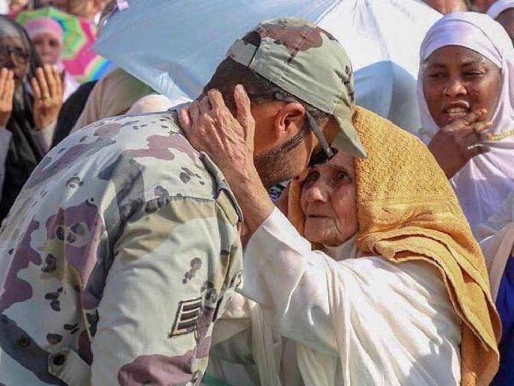 في المشاعر رجالا ونساء من السعودية يساعدون ويوجهون بل ويضحون بأنفسهم وذويهم من أجل ضيوف الرحمن. رجل أمن، استأذن والدته وهي في العناية المركزة بالمستشفى، ليذهب إلى المشاعر المقدسة يقدم الواجب للحجاج. ورغم أنه كان قلقا على أمه وهي مريضة، فإنه أراد أيضا خدمة الحجاج في بلده. وفي الحج شارك في إنقاذ مسن مصاب، مؤكدا أن الإنقاذ يشمل جميع الحجاج بمختلف جنسياتهم فلا فرق بين المواطن والمقيم والزائر.