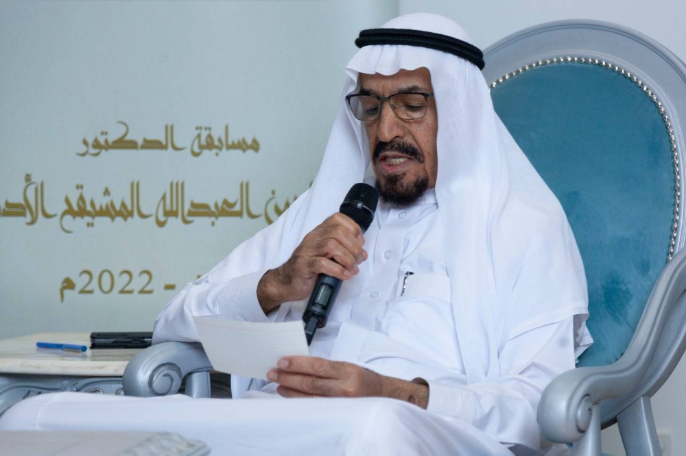حيث بدأت مراسم الاحتفال بكلمة لمؤسس وراعي المسابقة سعادة الدكتور عبدالرحمن العبدالله المشيقح، قدم خلالها التهنئة الخالصة لفرسان المسابقة، مؤكداً جودة الأعمال الأدبية التي قدموها.. كما وجه شكره لكافة المشاركين بالمسابقة، معتزاً كثيراً بالمستوى المتميز الذي وصلت له المسابقة رغم قصر عمرها.