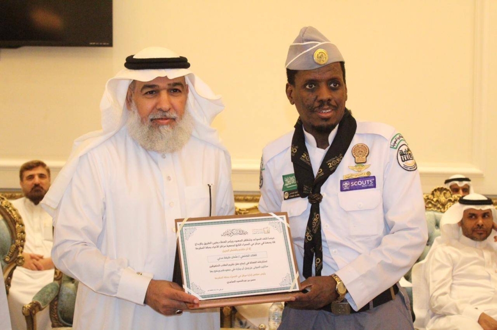 كرم مدير عام جمعية مراكز الأحياء ومشروع تعظيم البلد الحرام بمكة المكرمة الدكتور طلال مبارك اللهيبي، القائد الكشفي الصحفي عثمان خليفة مدني المشرف العام على فريق كشافة شباب مكة المكرمة التابع لجمعية مراكز الأحياء، وذلك تقديرا لدوره الإعلامي والتطوعي المميز تجاه أنشطة مركز حي الحمراء.